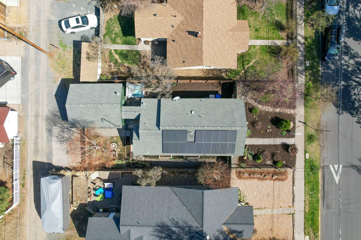 Two uncovered off-street spots off of back alley. On street parking in the front of the house is currently free per city and accommodates 1-2 vehicles.