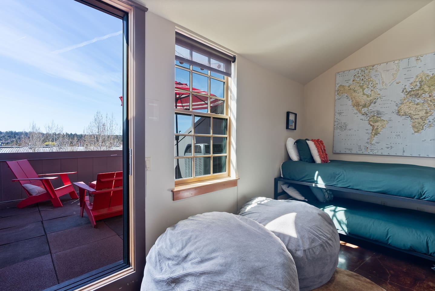 Good To Know: Must climb stairs! The bedrooms are on levels 2-4, so be prepared to carry luggage up to these spaces. Guests must also abide by the Good Neighbor Guidelines, particularly the quiet hours from 10pm-7am. Please be aware that noise decibel meters are installed on the property. The 3rd bedroom loft is a true loft - so it is not fully enclosed (see photos)