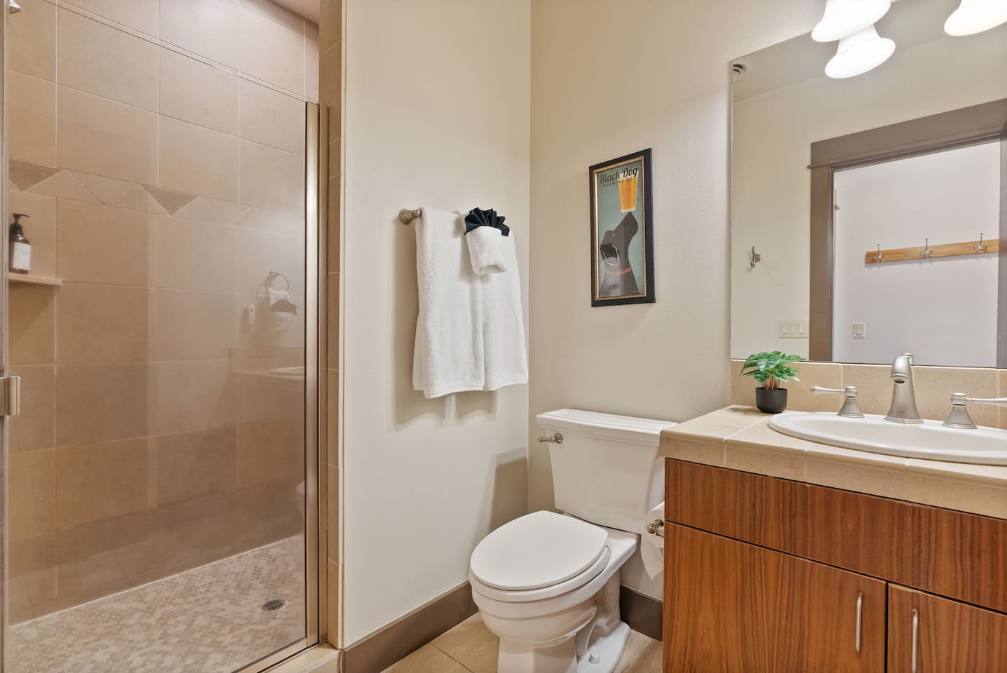 - Bathroom 1: Full bathroom with walk in shower. All towels and soaps (shampoo, conditioner, body, hand) provided.