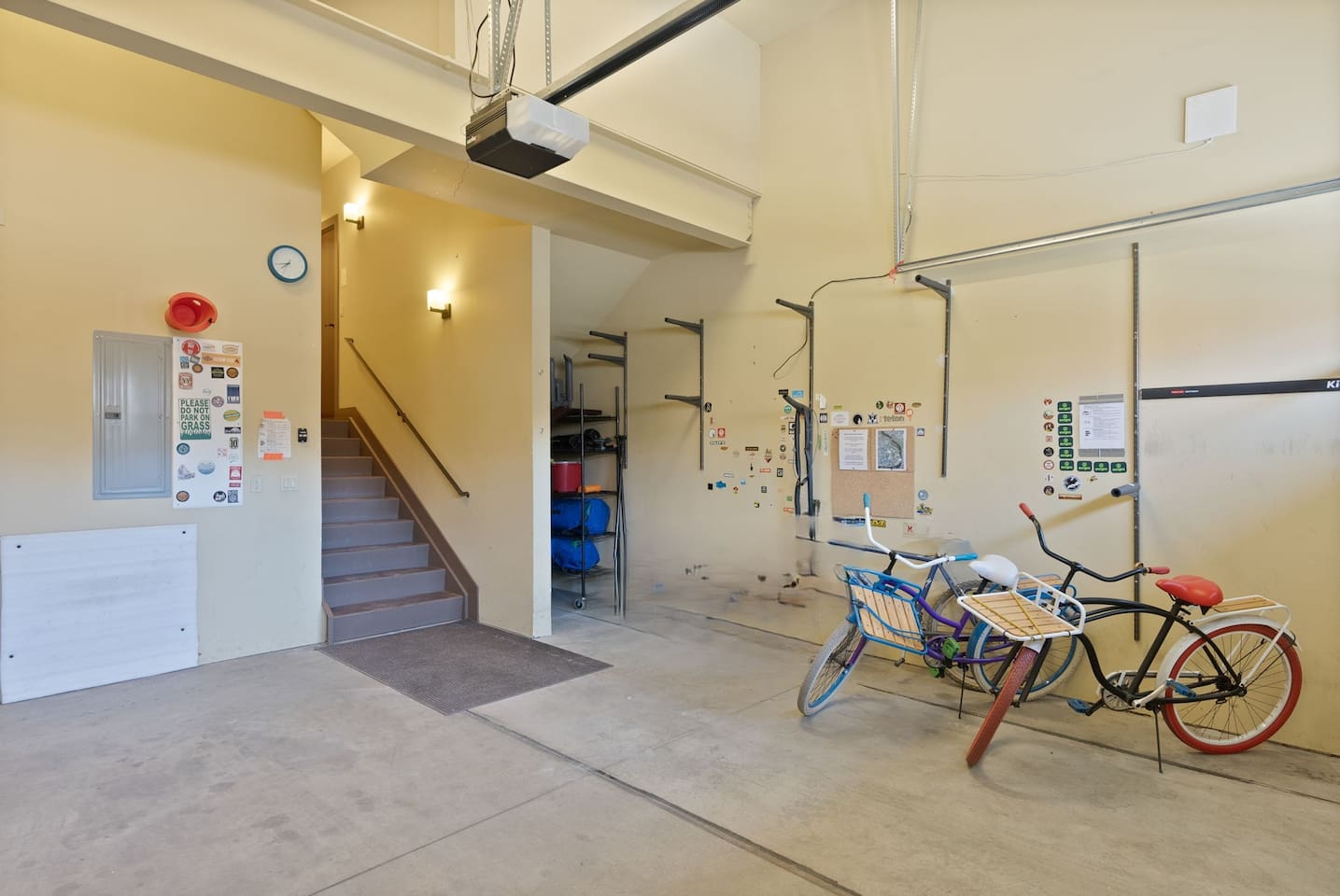 - Smart lock private entrance from Arizona Avenue leads into the foyer with garage access. The garage has two private parking spots for guest use, 2 cruiser bikes, 2 blowup paddle boards, and a bunch of tubes for floating!