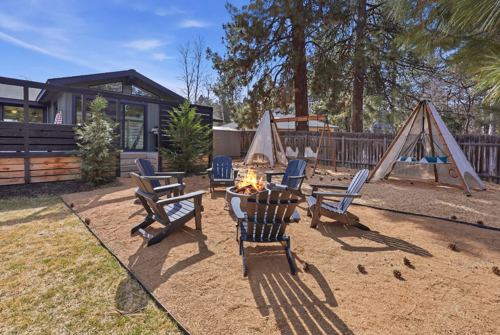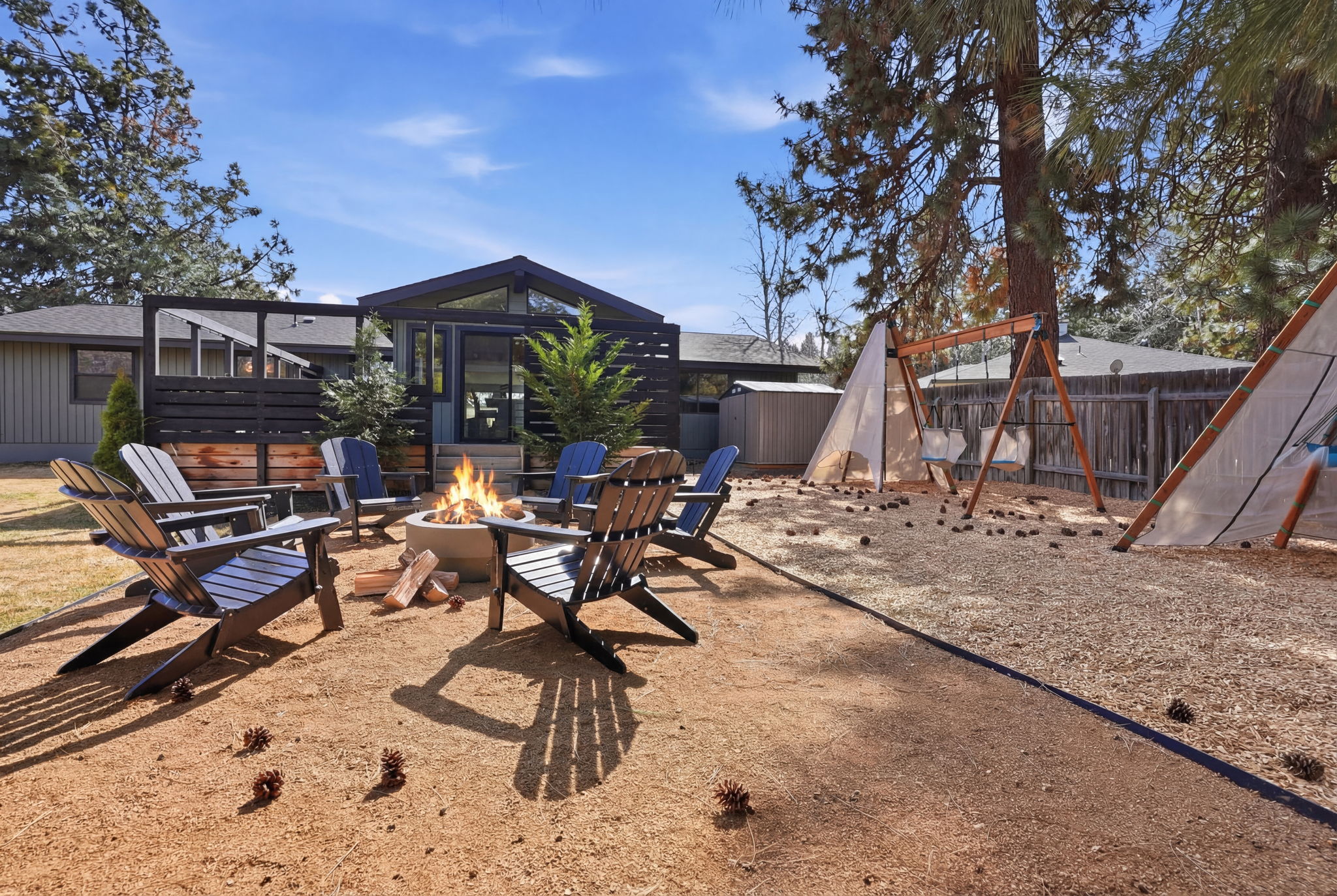 A warm, remodeled mid-century modern on nearly a half-acre in coveted Westside Bend — bunk room for the kids, 6-person hot tub, private yard with playset, and 21 minutes to Mt. Bachelor ski resort. Dogs welcome.